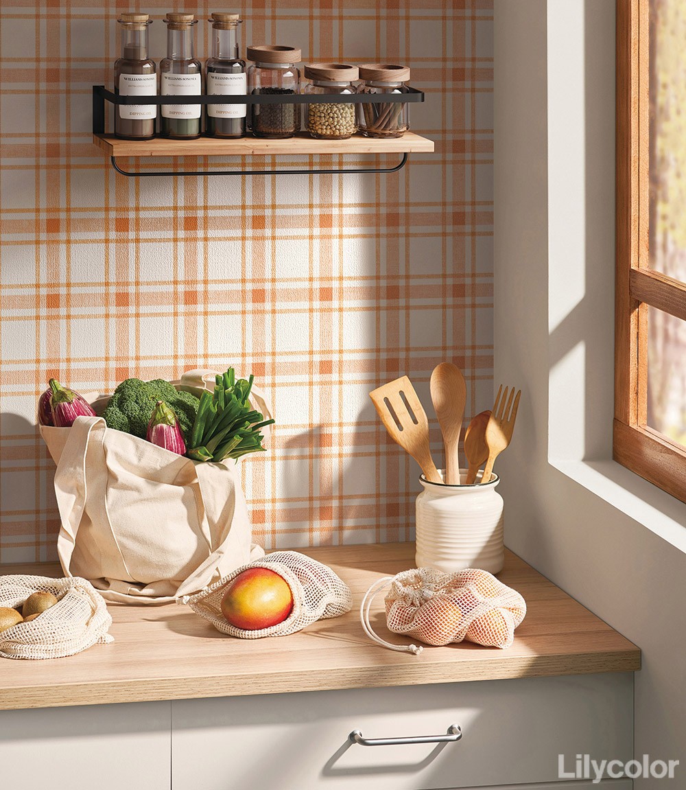 色彩と格子のリズムが楽しいチェック柄。懐かしさと温かみのある空間をつくります