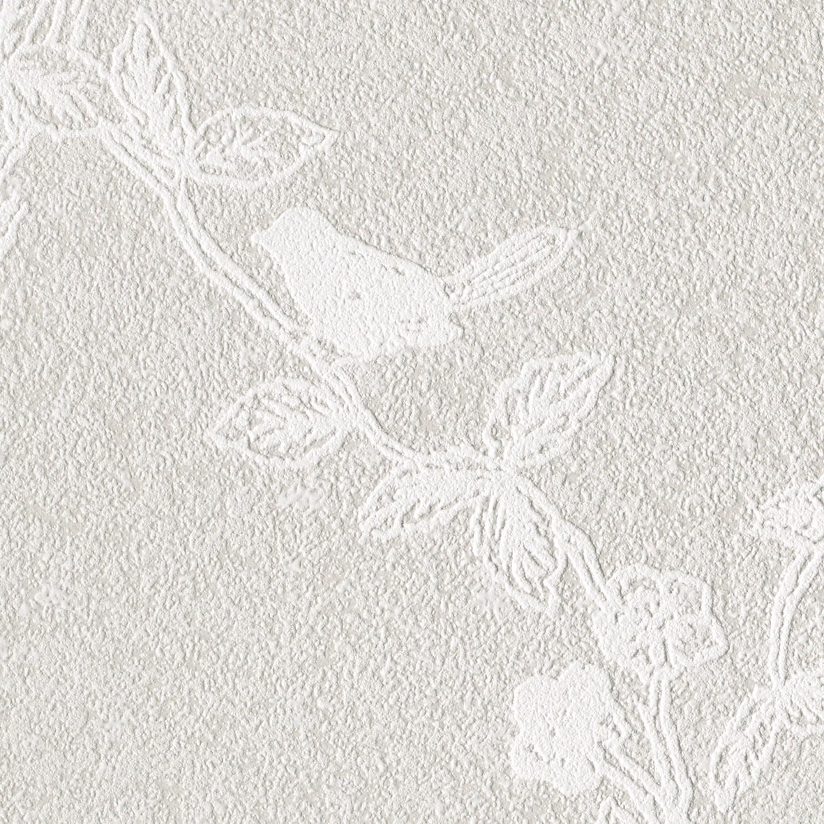 小鳥が枝に止まっている様子を描いた格子柄の壁紙です。