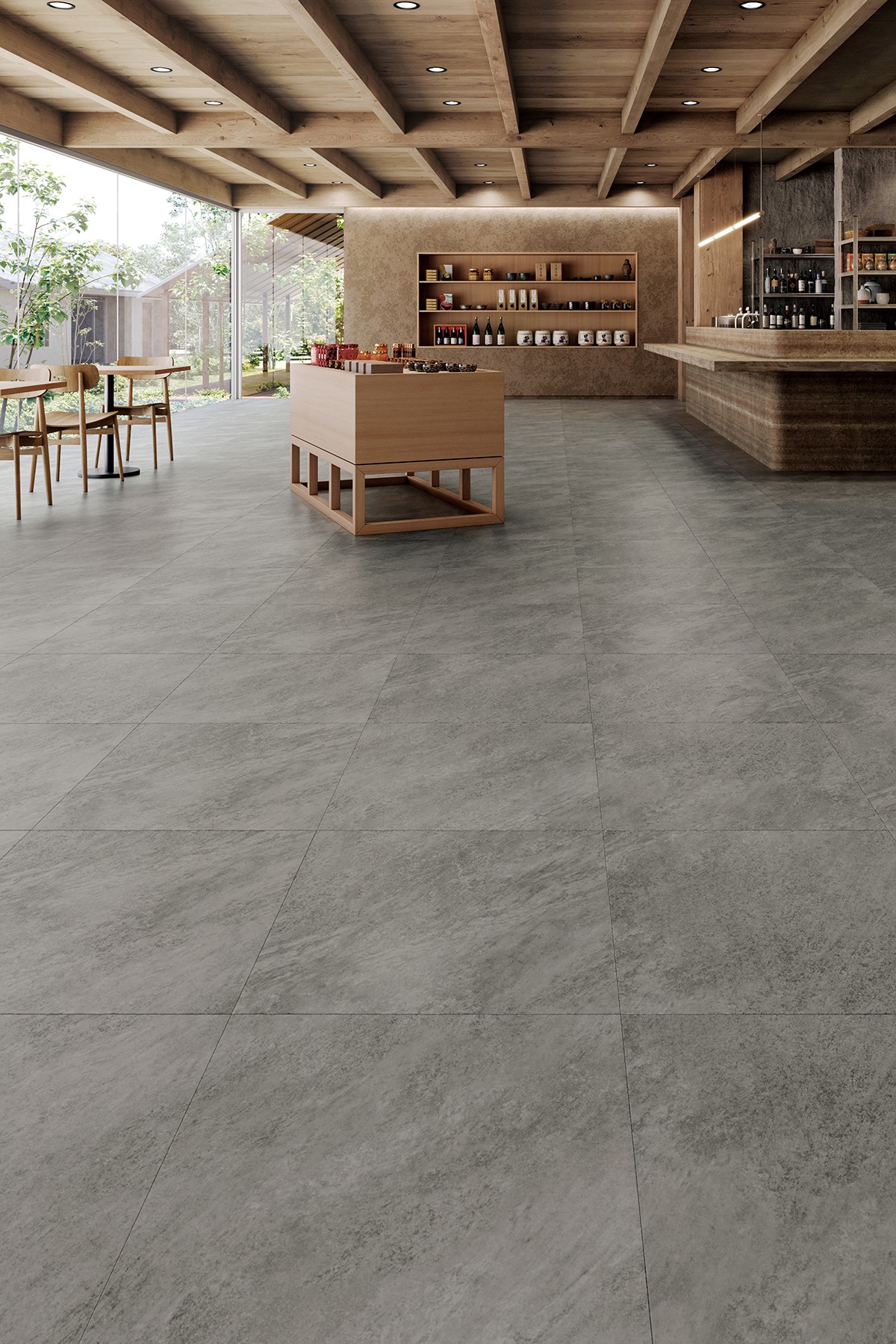 大胆な石の表情と濃淡の抑揚を600㎜角でデザイン。