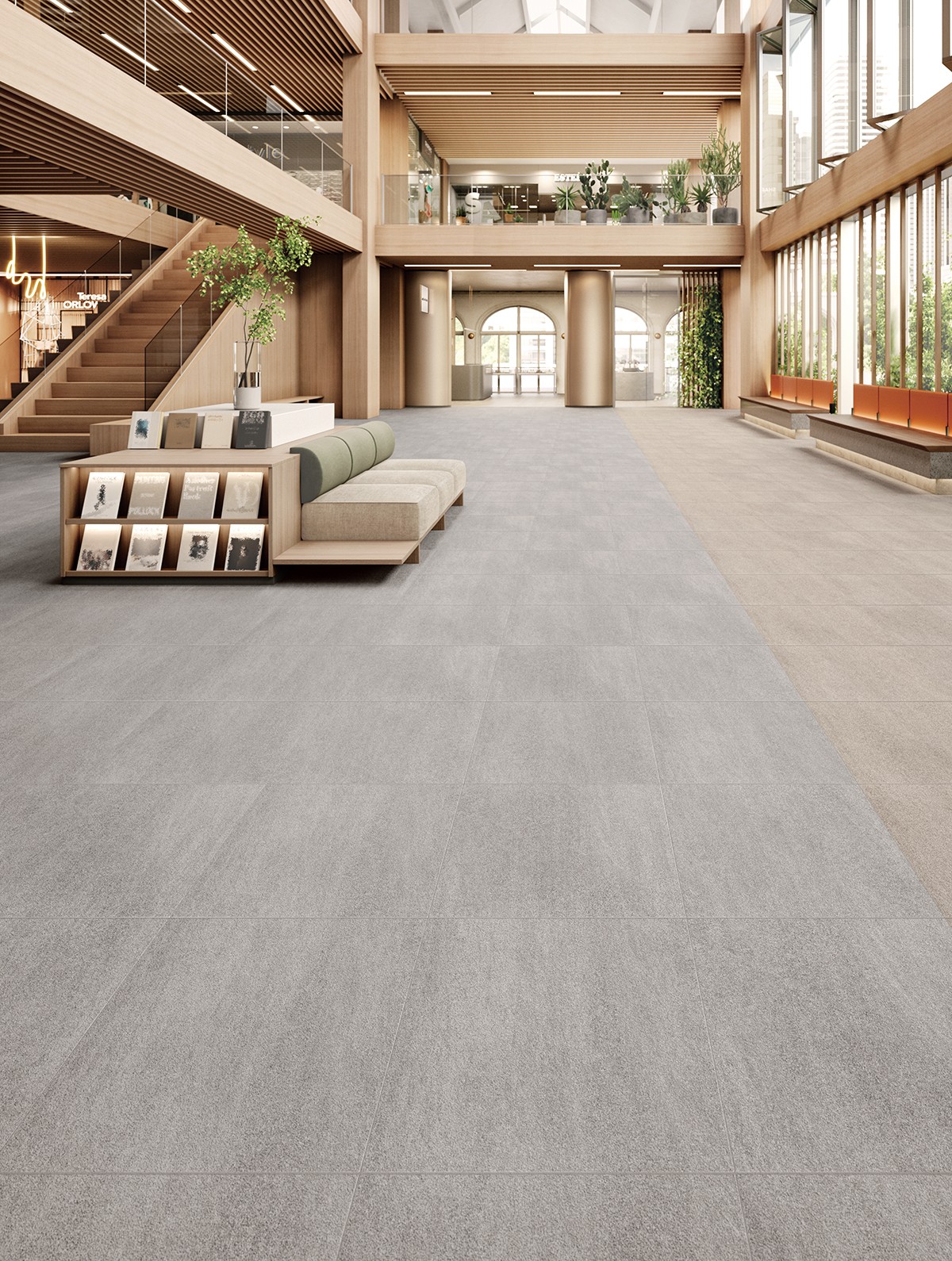 穏やかな表情のライムストーンと流れのあるサンドストーンを組み合わせ、パールインクで素材感を引き立たせた繊細なデザイン。