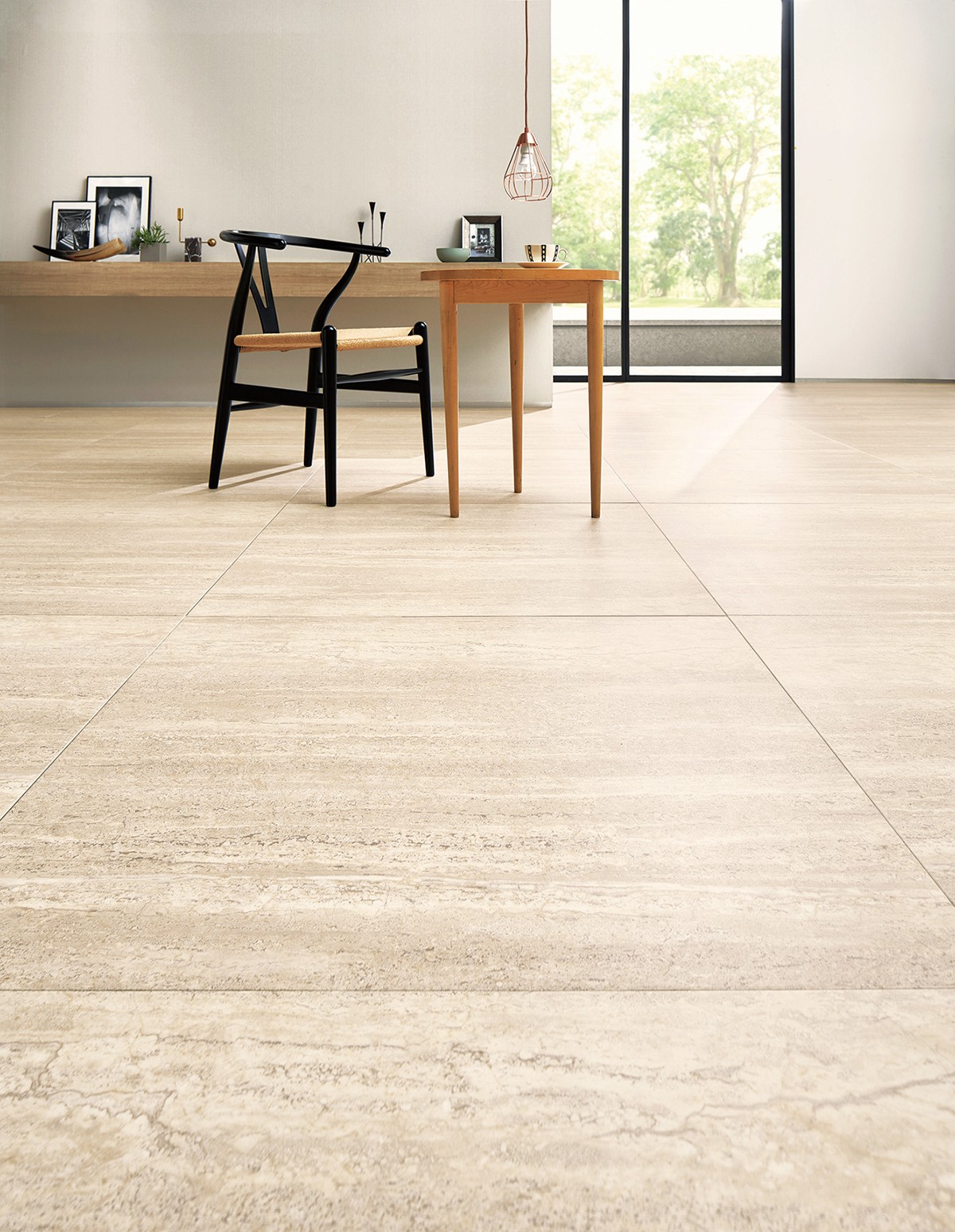 長い年月をかけて堆積した縞模様特有の美しいゆらぎを900mm角の大判でゆったりと表現。