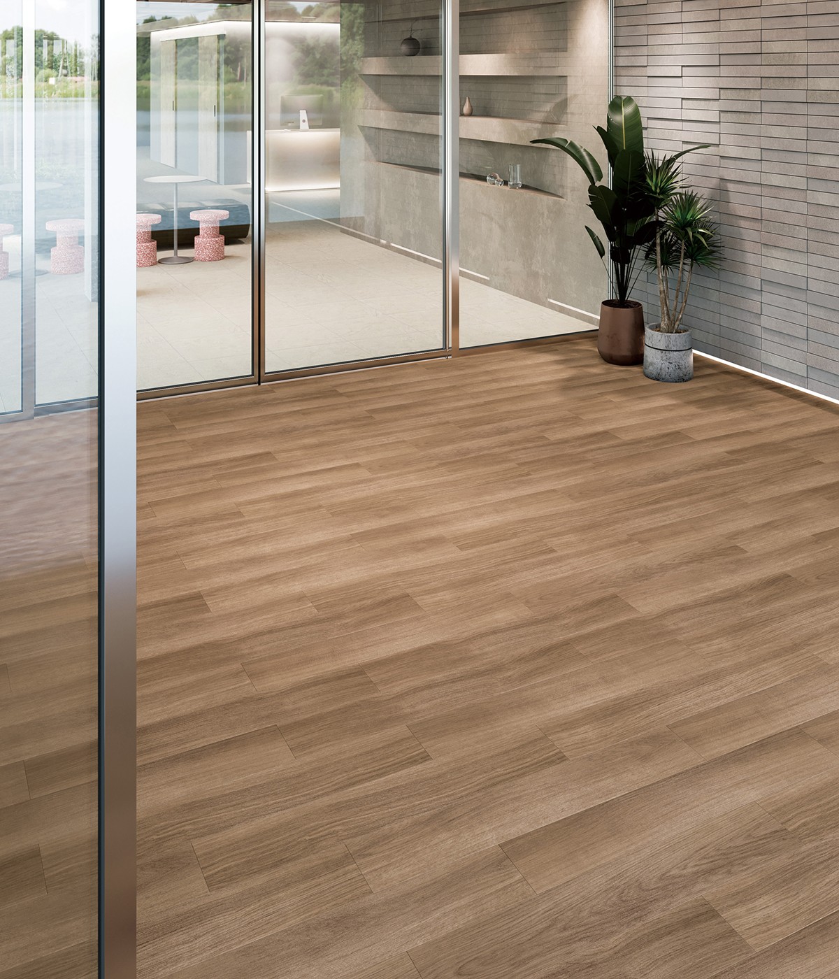 フロアプランに合わせて、防滑性能が求められる部位で意匠性を損なわずに安全性を向上できます。