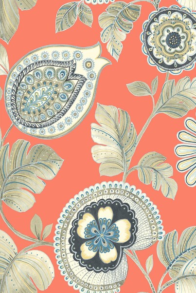 オレンジ フラワー WALLQUEST 1ロール8.2m RY31206 輸入壁紙