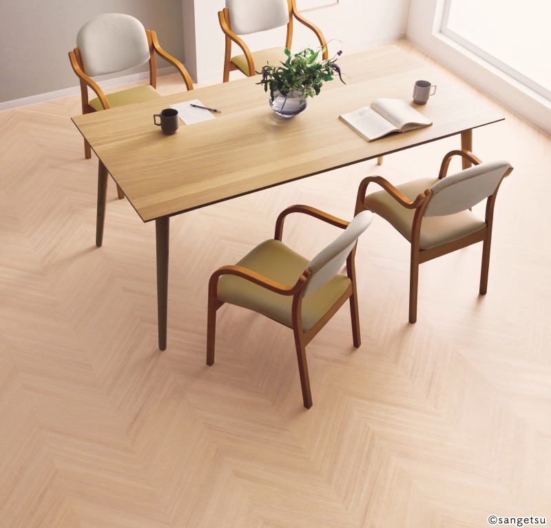 デザイン床材は一定の長さごとに同じ柄があるように作られており(リピート)、隣り合う床材と柄が合うようにあらかじめ同じ柄から始まるように床材を揃える必要があります。