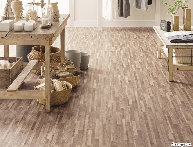 デザイン床材は一定の長さごとに同じ柄があるように作られており(リピート)、隣り合う床材と柄が合うようにあらかじめ同じ柄から始まるように床材を揃える必要があります。