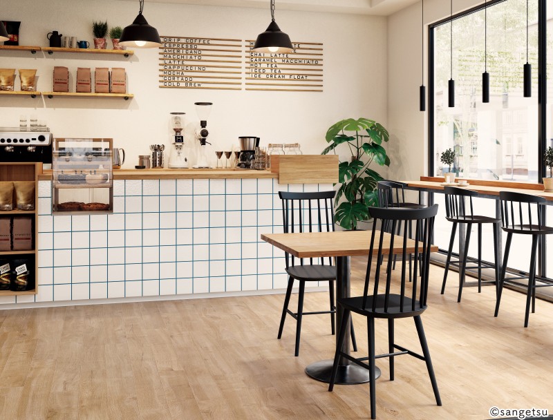 ヴィンテージ調の木目柄とエンボスが同調した長尺シートです。