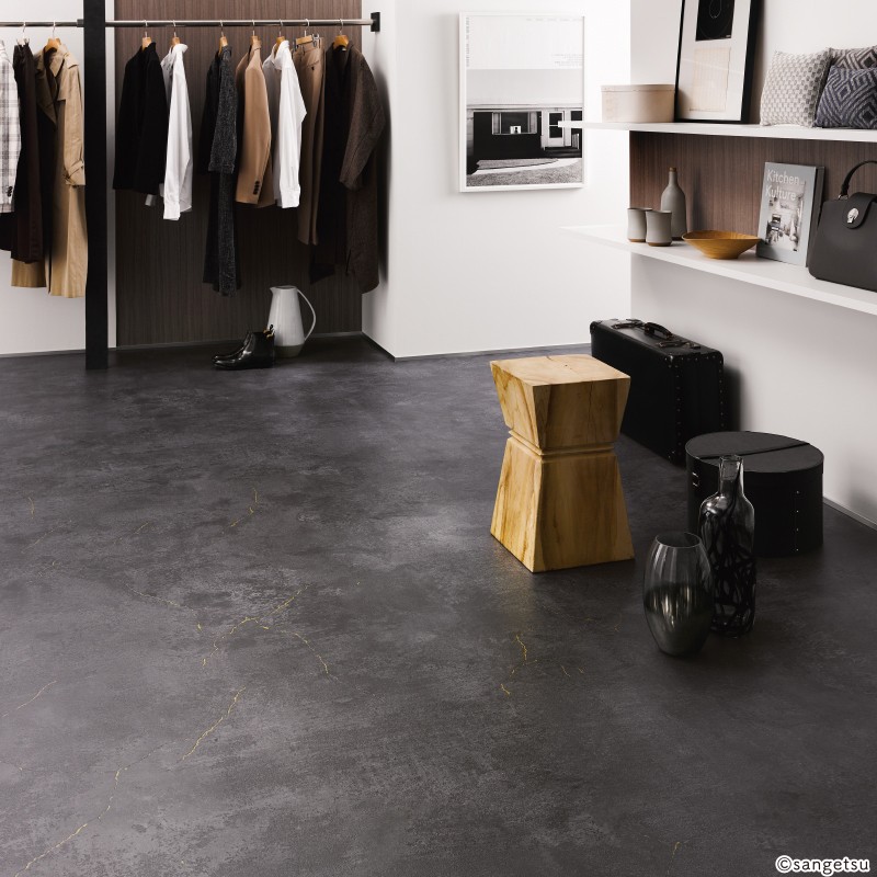 クラック(割れ)部分にゴールドを配色したモルタル柄とエンボスが同調した長尺シートです。