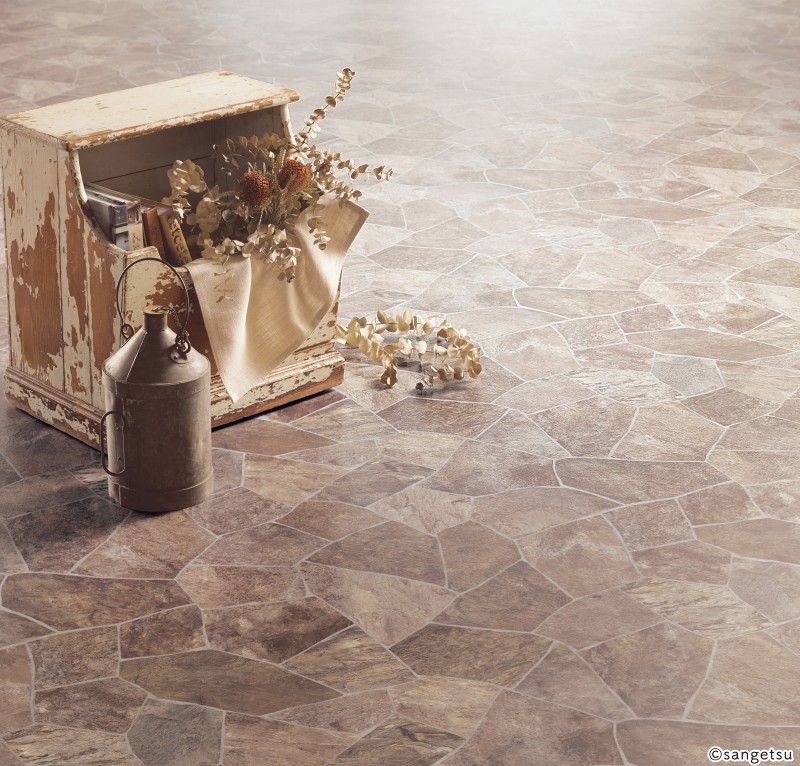 表面のリアルな凸凹によりデザイン性と防滑性を兼ね備えた2.0㎜厚重歩行シート。