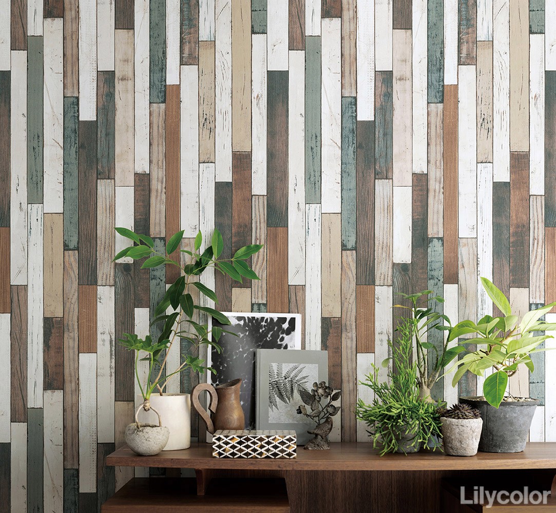 スクラップウッド調の壁紙。