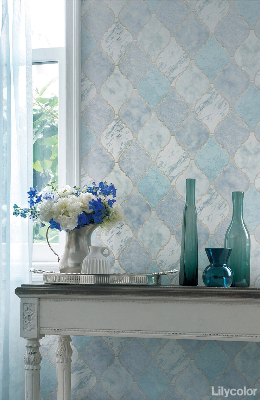 モロッカンタイルに大理石の模様を組み合わせた壁紙です。