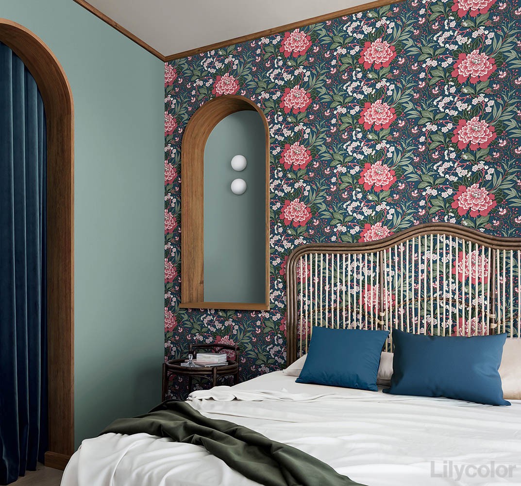 リンジー ・P・バターフィールドのエレガントなデザインには、極東の美学からインスピレーションを得た繊細な美しさがある牡丹や梅が描かれており、室内にいながら自然の素晴らしさを感じさせてくれます。