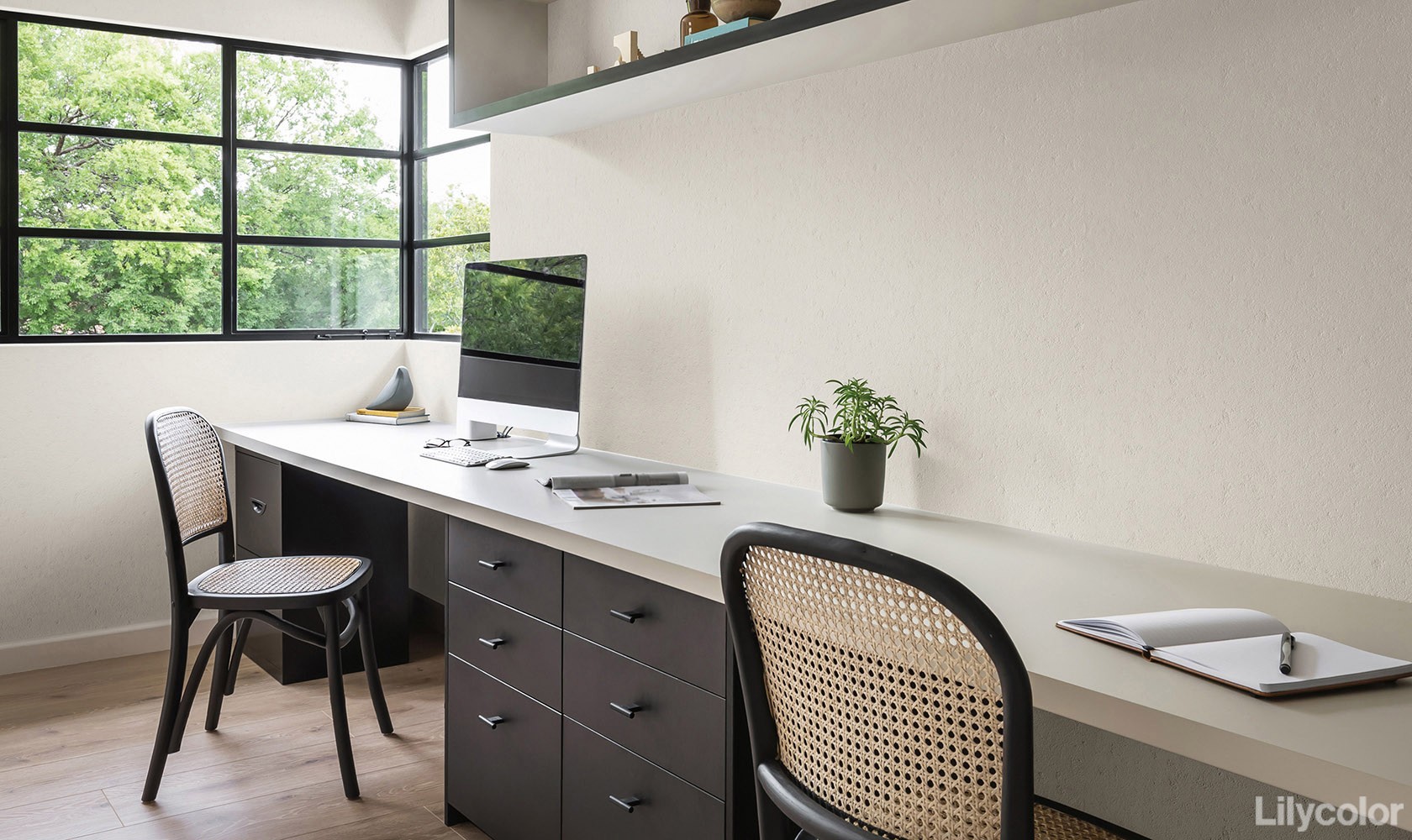 広い面積の貼りまわしやベースの壁紙として他の色柄とのコーディネートにおすすめです。
