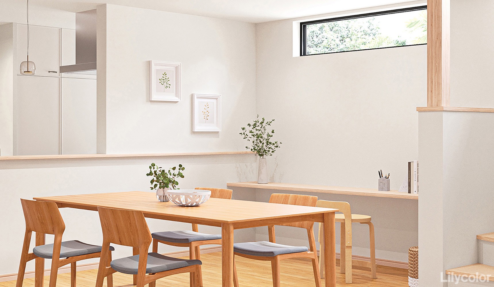 広い面積の貼りまわしやベースの壁紙として他の色柄とのコーディネートにおすすめです。