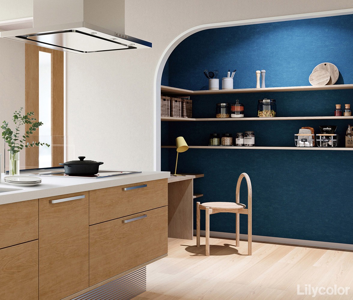 ブルー 塗り壁調 トップコート 防かび リリカラ LL-6413 旧品番LL-7059