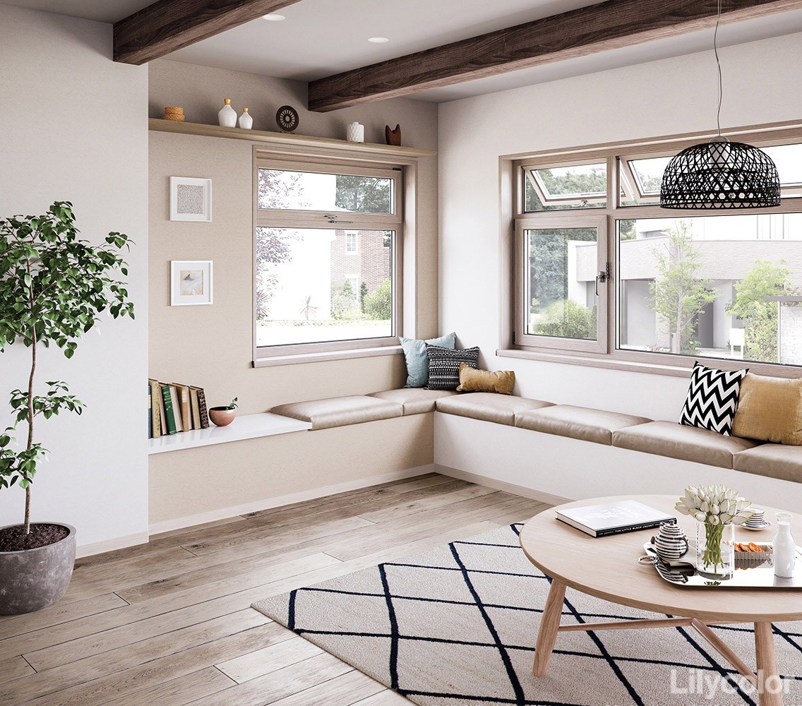 石の質感とナチュラルな家具を織り交ぜた洗練されたモダンリビング。コンクリートと岩石は一見クールでラグジュアリーなイメージですが、家具や床材をナチュラルなものにすることでリラックス空間にもなります。