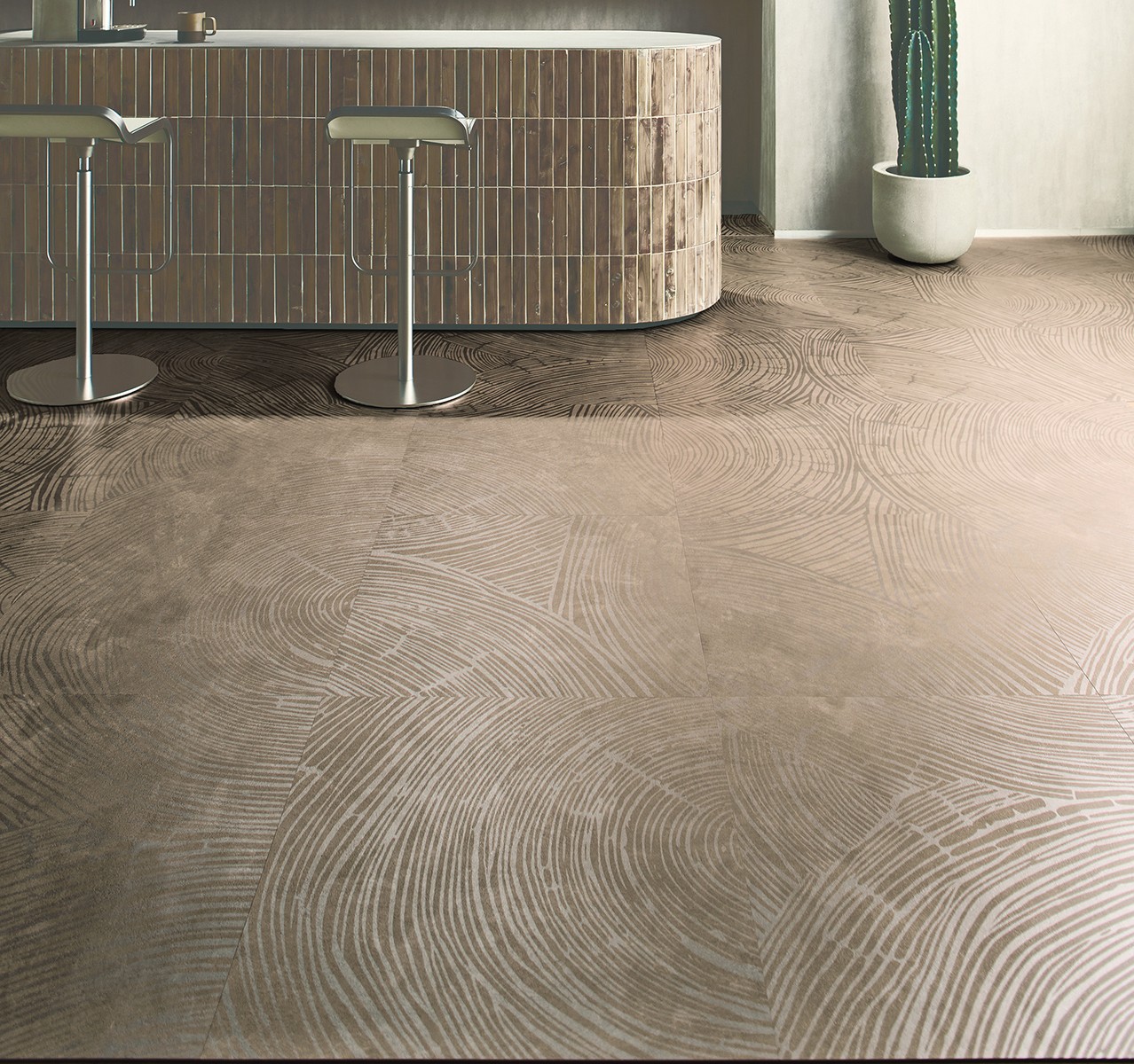 木目の年輪からインスピレーションを受け、自然の持つ無作為な規則性が心地よいデザイン。