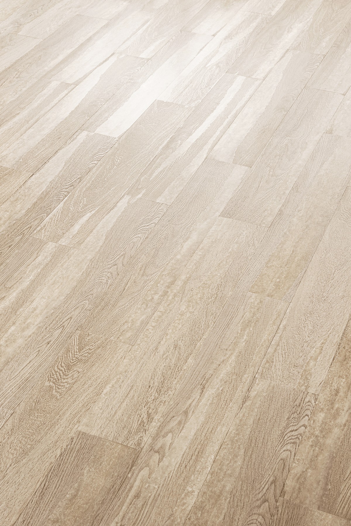 浮造りをかけたオークと、トラバーチンの美しい縞模様を調和させたマテリアルミックスデザイン。